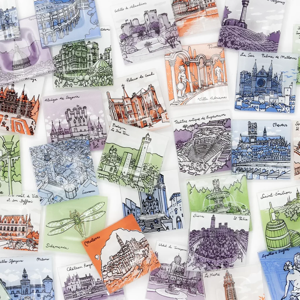 Nuestras ilustraciones, captan lo esencial de cada monumento con un estilo propio. Este toque artístico otorga una personalidad única a cada pieza.